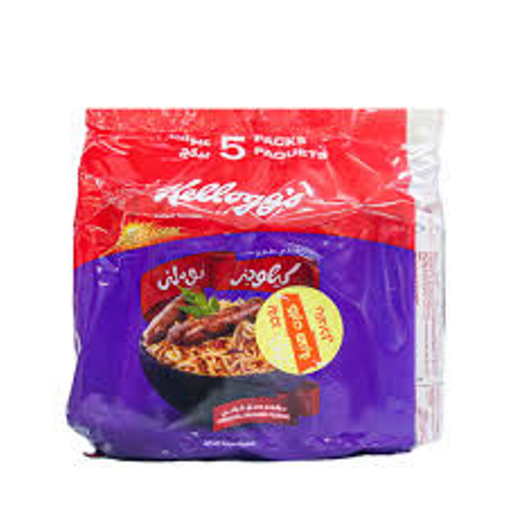 Kellogg Sausage Noodles 350g are a quick, tasty, and satisfying meal solution. Designed for busy lifestyles, these noodles cook in minutes and offer a rich, savory sausage flavor that appeals to both adults and children. The noodles have a soft yet springy texture, perfectly coated with the delicious seasoning for a convenient and hearty dish.
